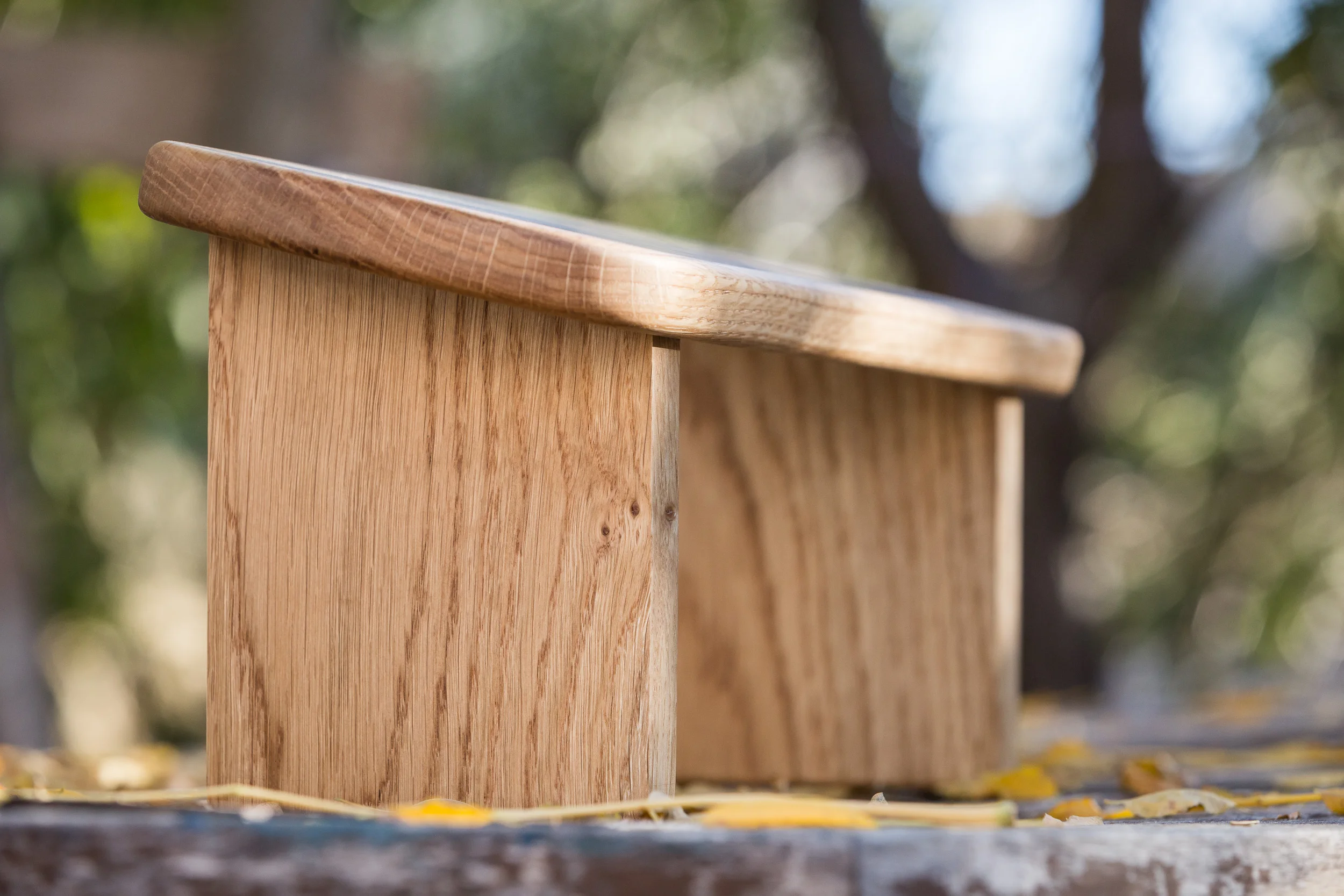 White oak, sanded to 320 grit, finished with Kreidezeit Holzlasur, buffed with homemade furniture polish