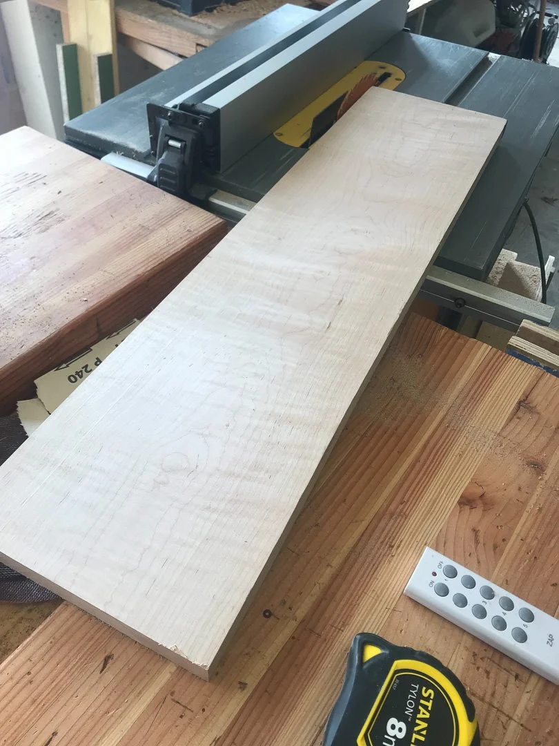 I start with cutting both boards into equal strips and then arranging them one walnut and one maple