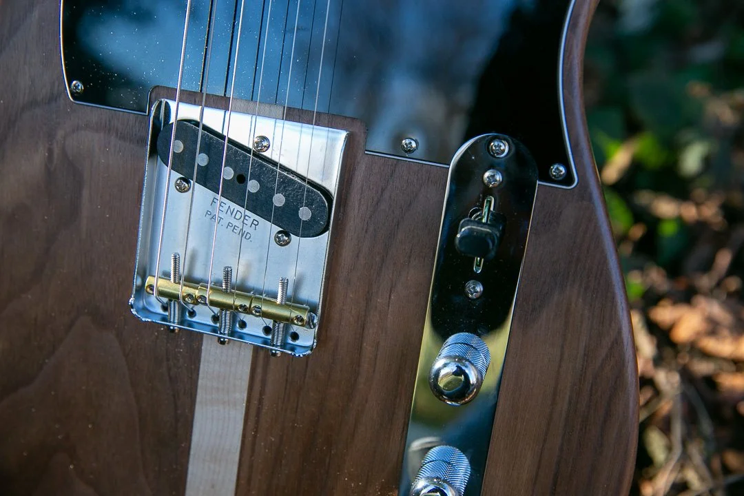 Here we build a Fender Telecaster style guitar using walnut and maple for the body and neck and ebony for the fretboard.